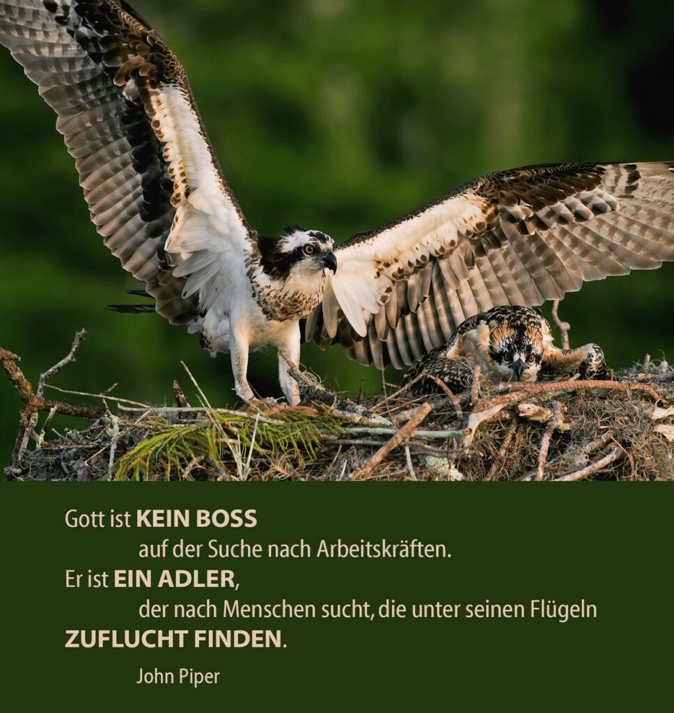 Von Gott aber sagten die Menschen der Bibel und sagen viele Gläubige bis heute, dass er beschirme und errette, schone und befreie (Losung) oder, wie es im Psalm 91:4a heißt: »Wie ein Vogel seine Flügel über die Jungen ausbreitet, so wird er auch dich stets behüten und dir nahe sein.«