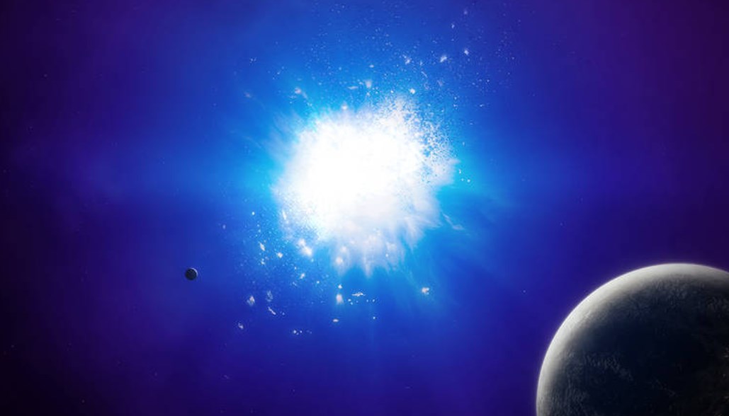 „Nun“, antwortet der Astronom – “ wie wir Wissenschaftler annehmen, durch den Urknall, das kannst du dir wie eine gewaltige Explosion vorstellen, die gesamte Materie des Universums war in einem winzigen Punkt konzentriert und ist plötzlich explodiert“…
