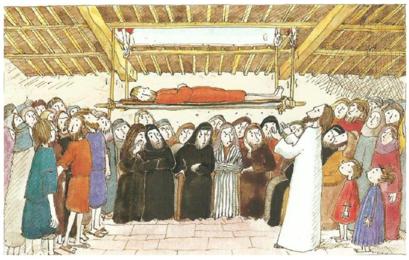 „Und sogleich versammelten sich viele, so dass selbst an der Tür kein Raum mehr war; und er redete zu ihnen das Wort. Und sie kommen zu ihm und bringen einen Gelähmten, von vieren getragen. Und da sie wegen der Volksmenge nicht an ihn herankommen konnten, deckten sie das Dach ab, wo er war; und als sie es aufgebrochen hatten, ließen sie das Bett hinab, auf dem der Gelähmte lag.“ (Markus 2:3-4)