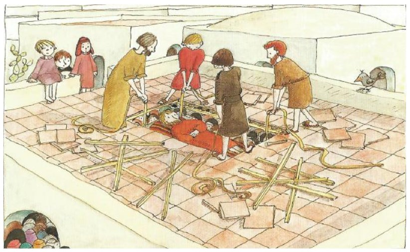 Wer glaubt, dass sie resigniert die Kehrtwende machen, hat sich getäuscht. So schnell geben sie nicht auf. Es muss doch einen Weg geben. Ihr gelähmter Freund muss eine Begegnung mit diesem Jesus haben. Die Entscheidung ist schnell gefallen. Das Dach! Sie packen die Trage und schleppen ihren Freund mit viel Anstrengung da hoch. Dann fangen sie an, das Dach abzudecken.